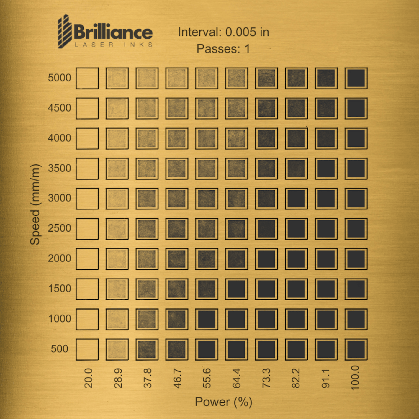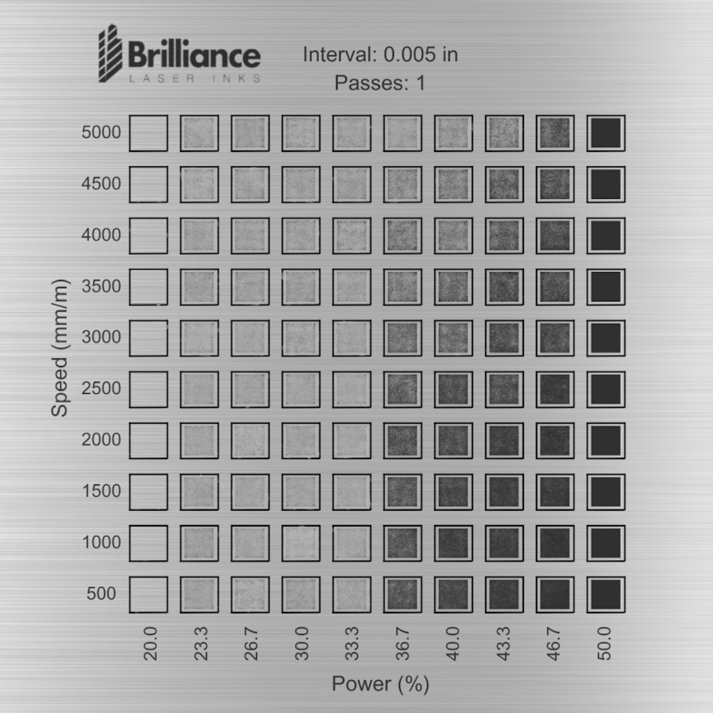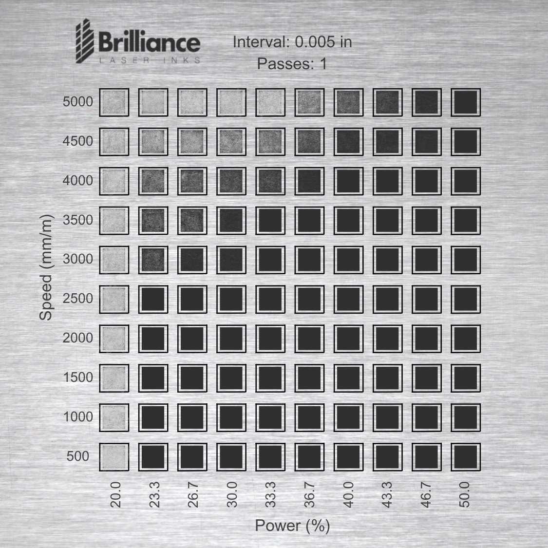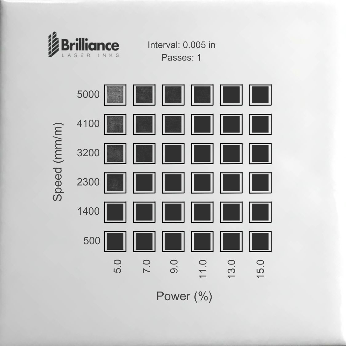 Note: These are just general guidelines, and settings may vary, depending on the laser you are using and the substrate you have for marking.