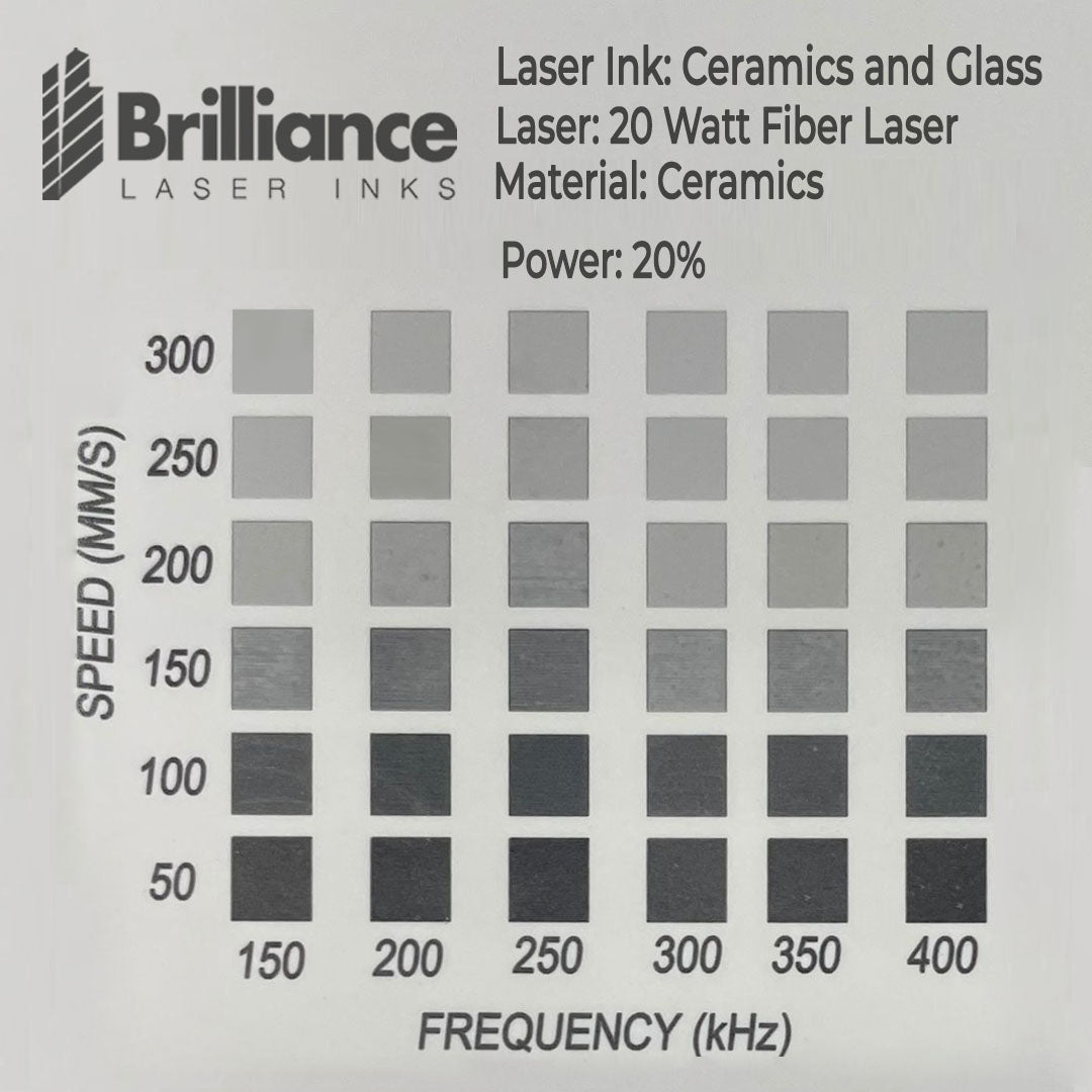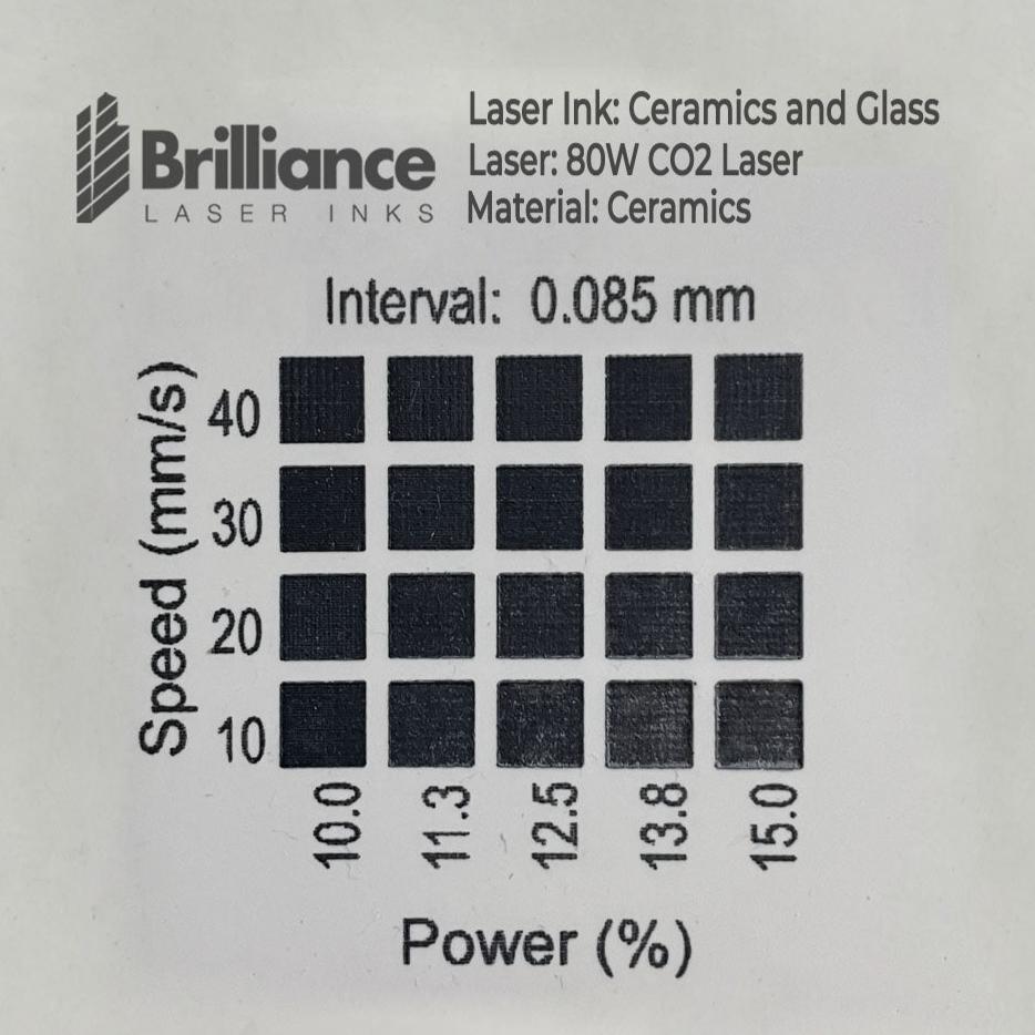 The below tests were generated by using a 80W CO2 Laser, please make sure these specifications match with your laser otherwise, check your laser specifications and make sure the resultant wattage at 10% as noted in the below tests for Ceramics matches your final settings to get the same result.