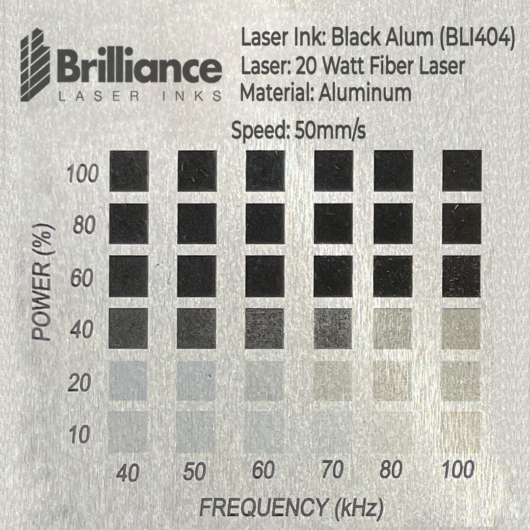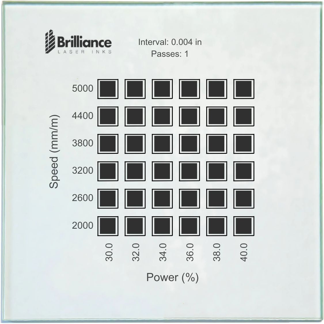 - The material test grids were created using a 20-Watt Fiber Laser.